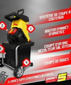 - Excellente capacité de broyage grâce à son moteur puissant et silencieux, broie des branches dures jusqu’à 45mm de diamètre
