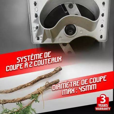 Ce broyeur de végétaux de la marque Elem Garden Technic dispose d’une puissance de 2400W et permet de broyer des branches d’un diamètre de 45 mm grâce à un système de coupe à 2 couteaux. Il est livré avec un sac récolteur de 45 litres. Pour votre sécurité, il est équipé d’un bouton d’arrêt d’urgence.
