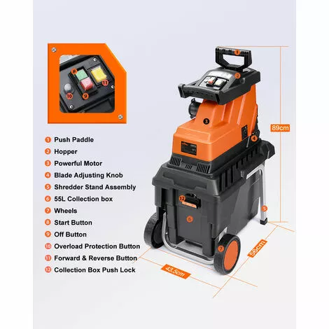 9. Grand bac de récupération (volume 55 litres) compartiment de rangement pour outils et petites pièces avec interrupteur de verrouillage.